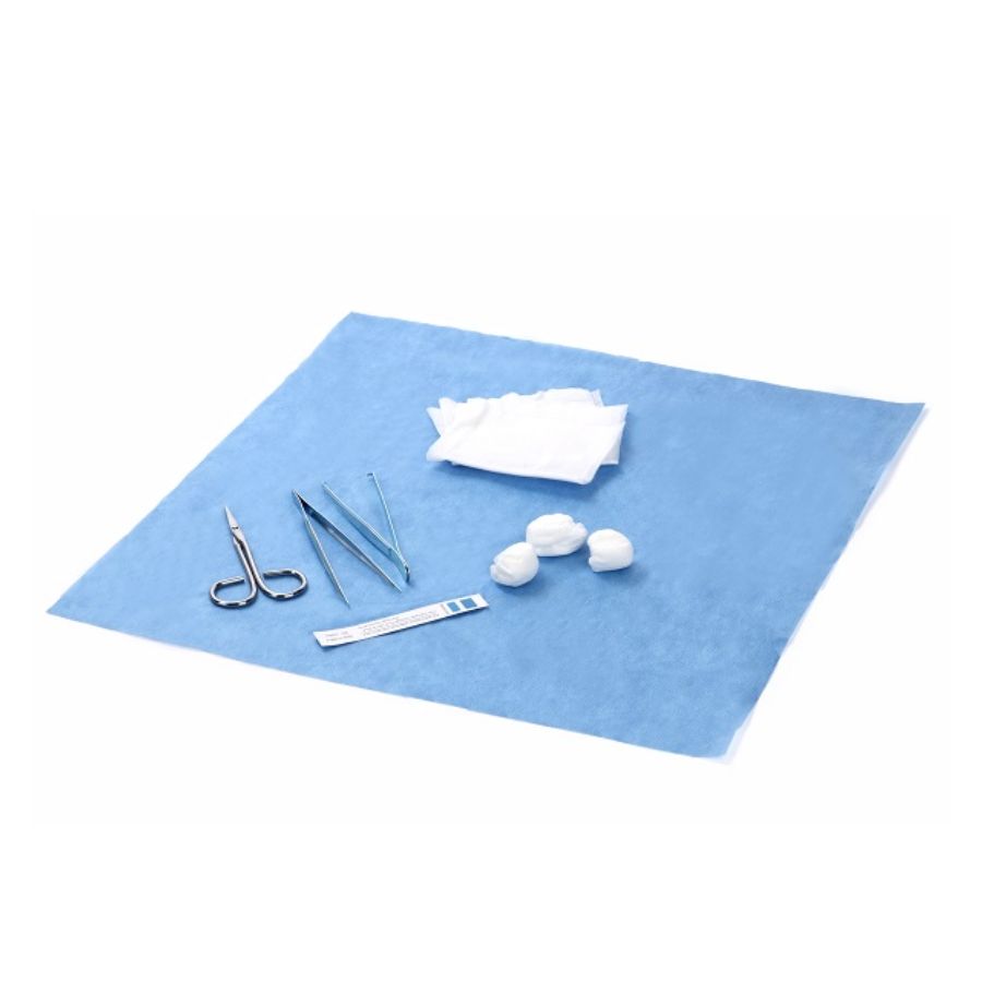 Spunlacas globos, 35g/m² spunlacas, 3 pcs Disponi forfice, metallo, apice acuto, 12cm, 1 pc TEXTUS forceps, metallum, 12cm, 1 pc Pads spunlacae, 14.5 x 19.35cm, magnitudine 7.25 x 9.75cm plicatae, 4-necte, 3 at pede. Sutura remotio forfex, metallum, 14cm, 1 pc Tray, 17 x 11cm, 1 pc Wrap, 40 x 40cm, 35g/m² SMS non contexta, 1 pc Sterilisation indicator card, 1 pc |